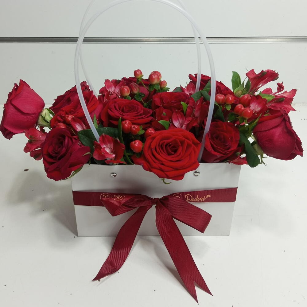 Коробка с цветами «Композиция из красных роз в подарочном пакете»