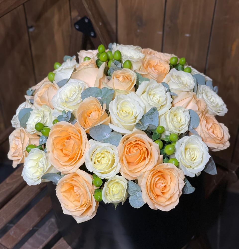 Шляпная коробка с цветами «Композиция из роз»