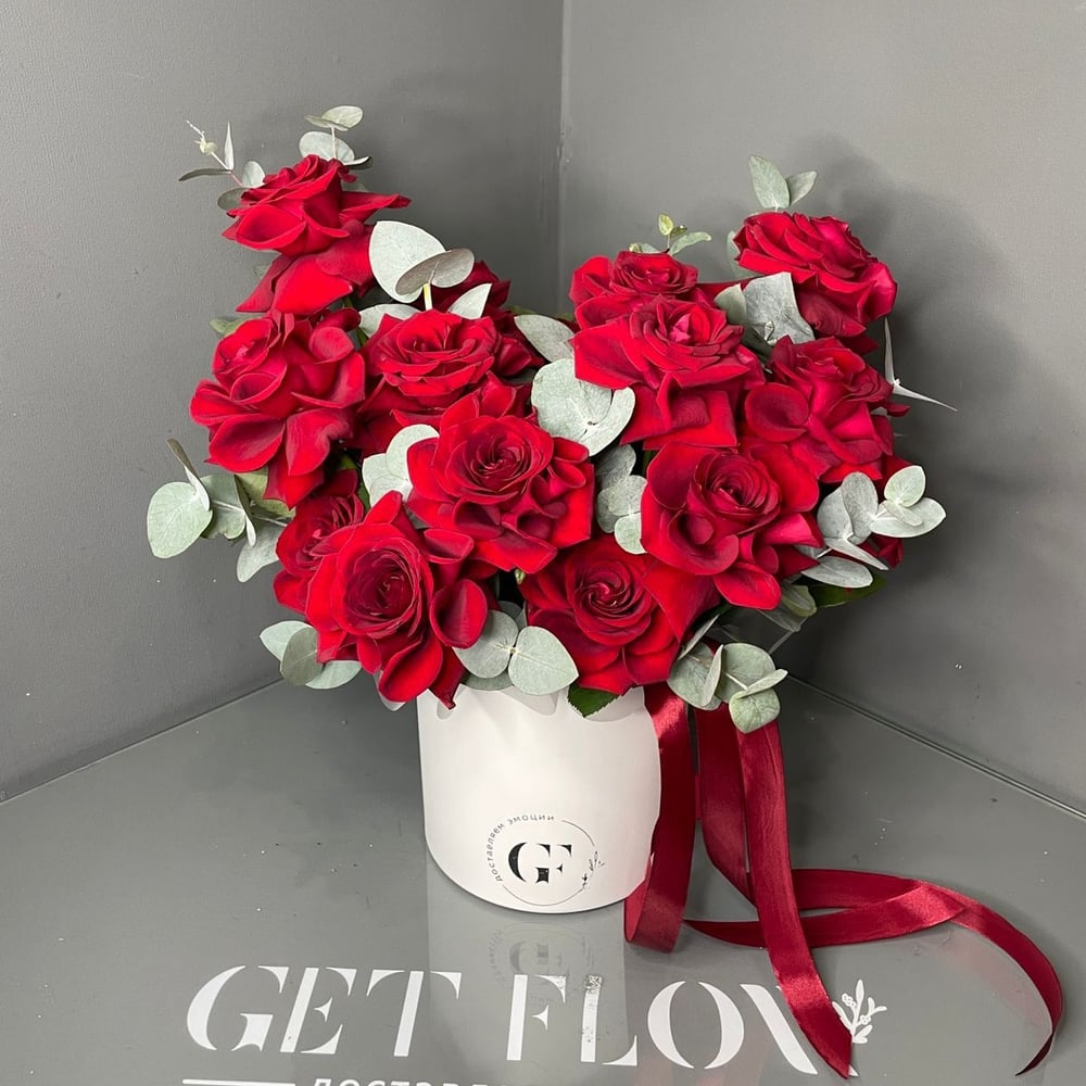 Эта великолепная композиция состоит из нежных роз и эвкалипта упакован в стильную коробку с оазисом, чтобы цветы оставались свежими и красивыми как можно дольше. Идеальный выбор для подарка вашим близким или близкому человеку.