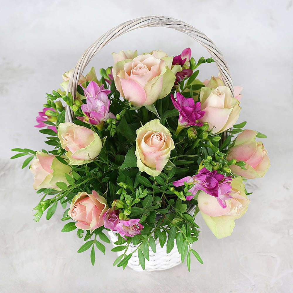 Корзина с цветами «Композиция из розовой розы»