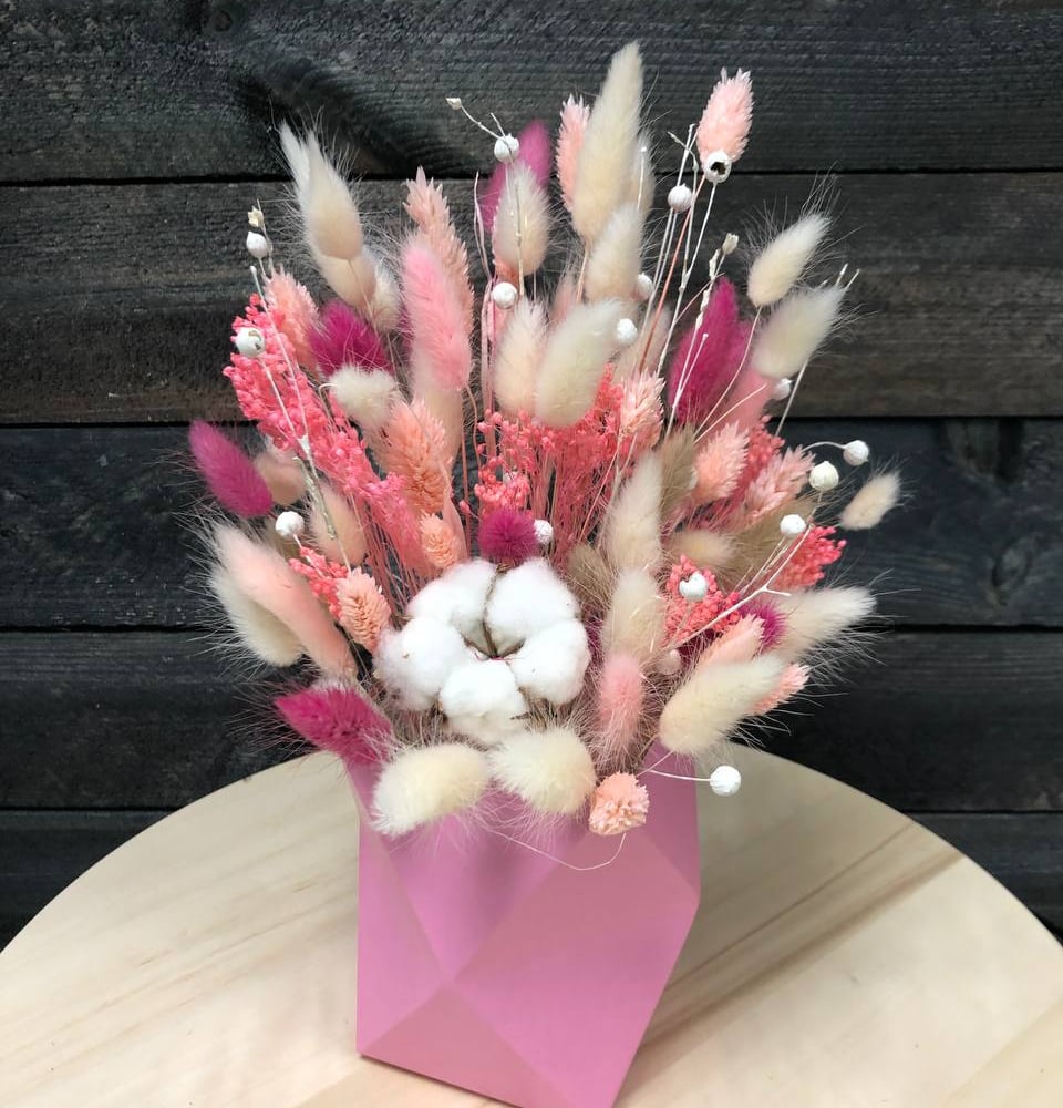 Милая композиция из сухоцветов, которая отлично подойдёт как на подарок, так и в качестве интерьерной.