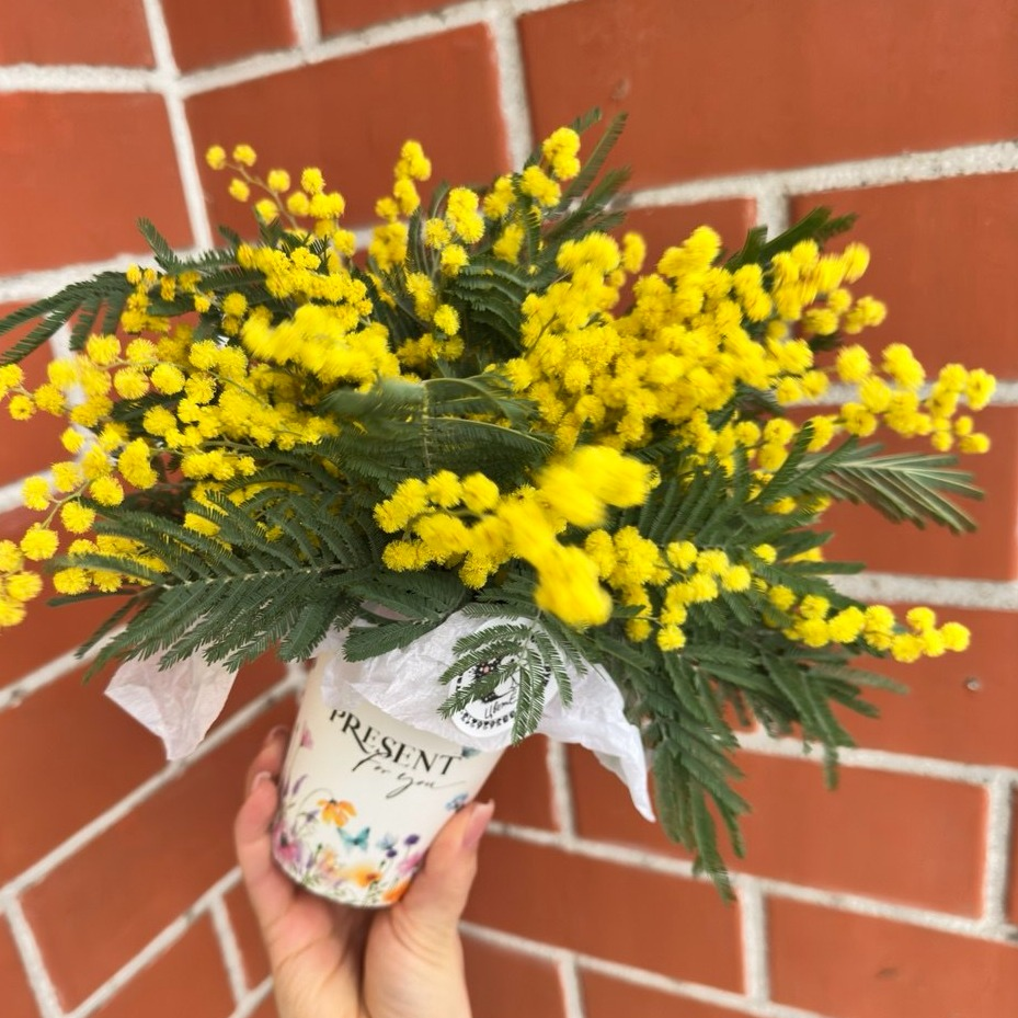 «Весна пришла!» Мимоза здесь не просто цветок, а настоящий символ обновления, лёгкости и искренней заботы. А стильная коробочка с цветочным орнаментом превращает букет в продуманный, элегантный подарок. Отлично подходит для корпоративных поздравлений!