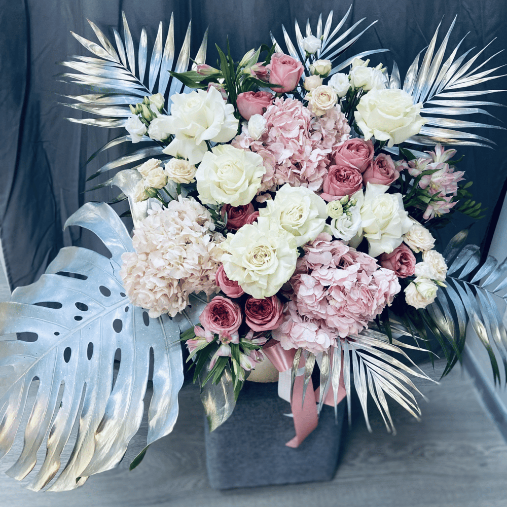 Шикарная композиция в бело розовой Гамме покорит сердце любой красавицы🥰