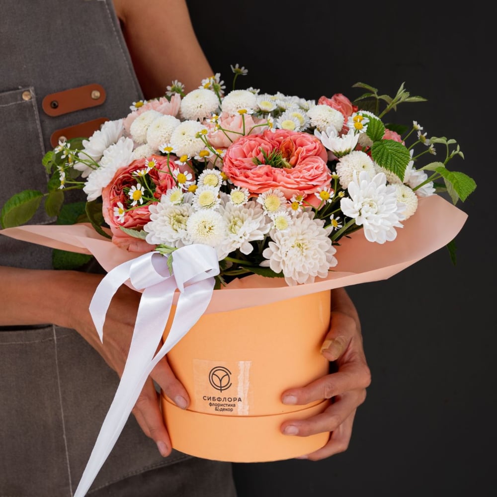 «Лав Наркотик» — цветочная эйфория в границах шляпной коробки от Центра Флористики в Красноярске Там, где эмоции становятся формой, а чувства — материей, рождается «Лав Наркотик» — не просто композиция, а воздействие, переданное через лепестки совершенных цветов и их оттенков. Это цветочная инъекция нежности, затягивающая своей глубиной, как первый взгляд, после которого уже ничего не бывает прежним. «Лав Наркотик» — потому что красота, доведённая до совершенства, наркотически притягательна. ⠀ Размер: высота 45 см., ширина 40 см. ⠀ Состав: роза пионовидная - 3 шт., хризантема кустовая - 5 шт., матрикария - 2 шт., диантус - 2 шт., зелень декоративная - 3 шт., оазис - 1 шт., плёнка, коробка шляпная