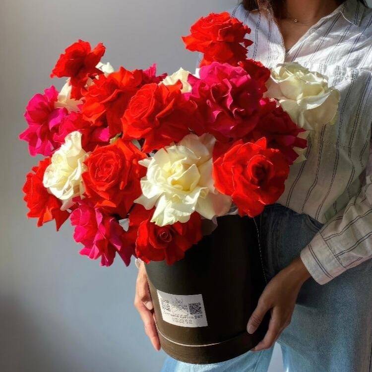 Шляпная коробка с цветами «Композиция Мальвина» из роз