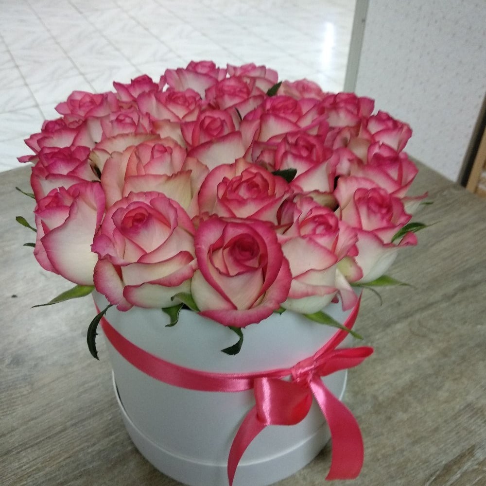 Шляпная коробка с цветами «Композиция Милая» из роз
