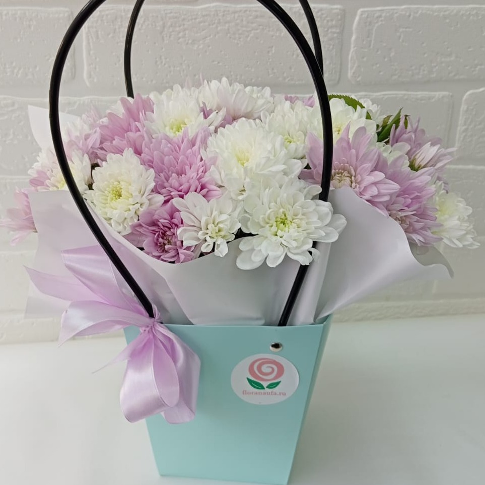 Эта нежная, элегантная и изысканная композиция упакована в стильную сумку. Она порадует своего получателя своей красотой и изяществом. Эта композиция станет прекрасным подарком для вашей любимой женщины или просто для того, чтобы поднять настроение близкому человеку. Хризантемы символизируют верность, благородство, скромность, умиротворение. Название растения в Китае означает "сущность солнца". Цветок неразрывно связывается с совершенством, зрелой привлекательностью, изобилием, долголетием, целомудрием и бесконечным счастьем.