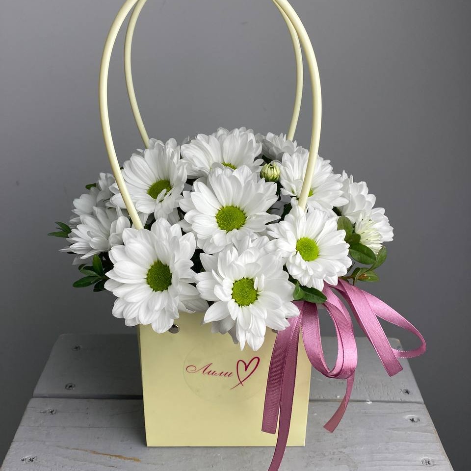 Коробка с цветами «Композиция "Ромашки"» из хризантем
