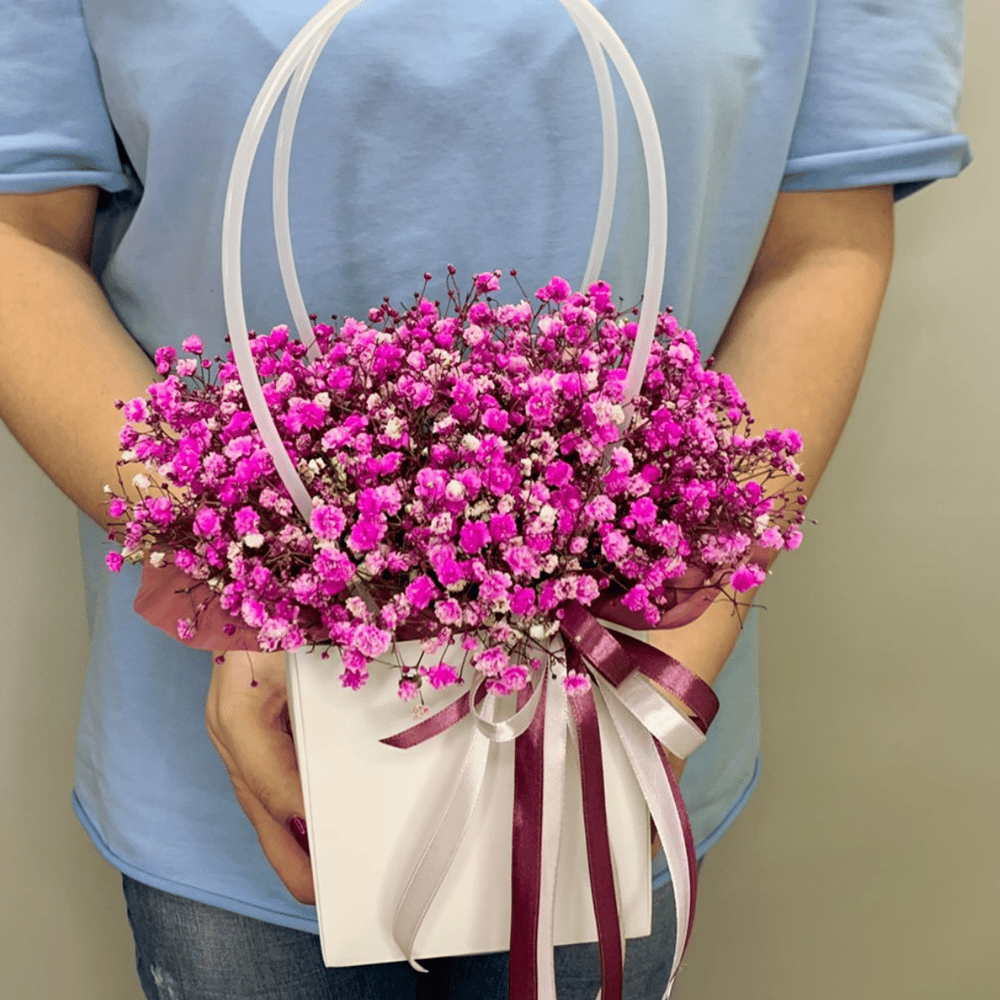 Коробка с цветами «Композиция Розовой Гипсофилы»