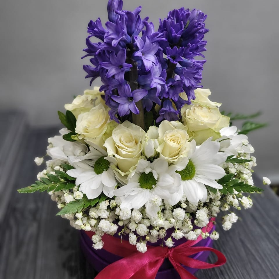 Коробка с цветами «Композиция с гиацинтом» из роз