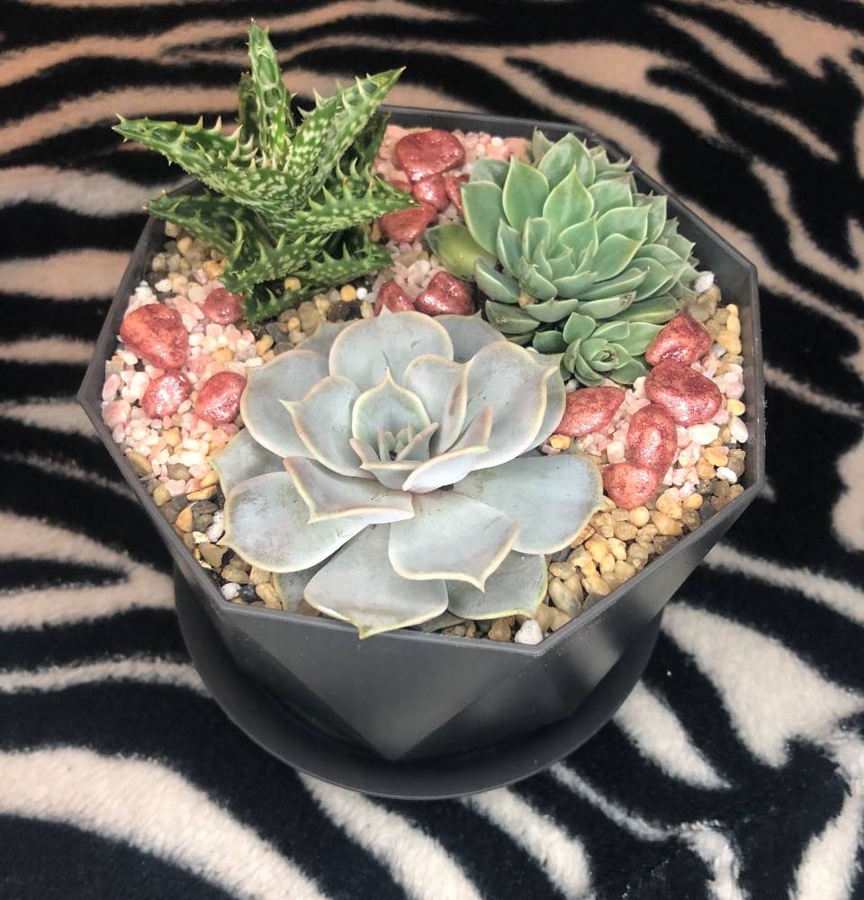 Композиция из суккулентов (эхиверии, алое) пересажены в специально подготовленный грунт с дренажем и декорацией сверху, кашпо пластик. Упакую в картонную коробку с атласными лентами, крафт-бумаг...