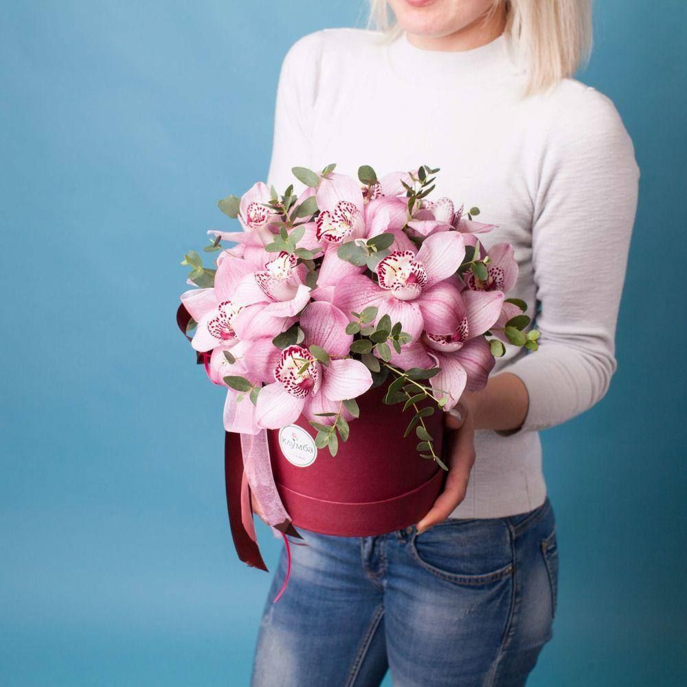 Шляпная коробка с цветами «Композиция в коробке Милагрос»