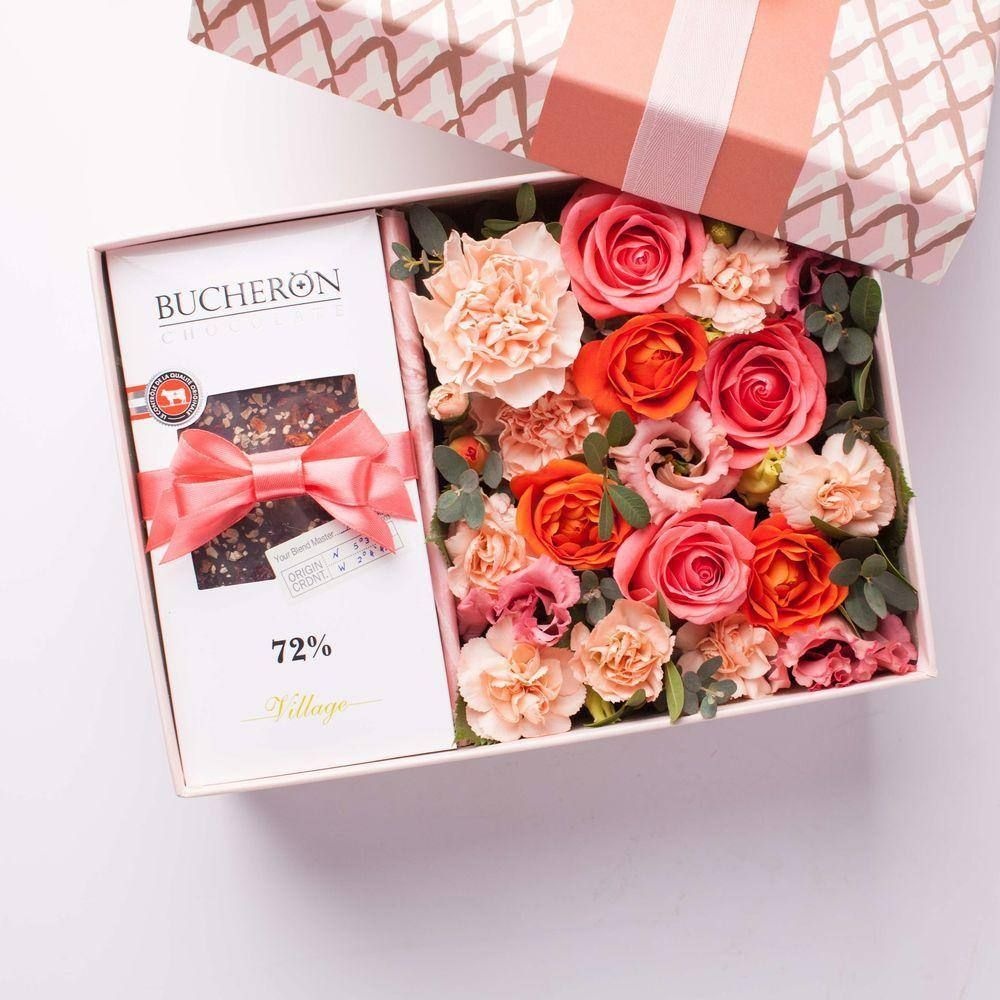 Подарочный набор «Композиция в коробке "Нежное признание"» из роз и гвоздик