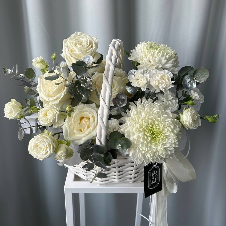 Композиция в корзине "Белая луна" из гвоздик