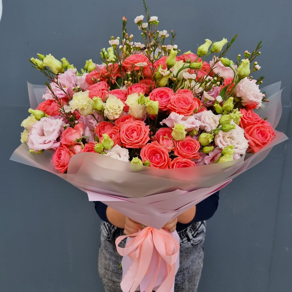 Букет «Кораловый флер» из роз и эустом