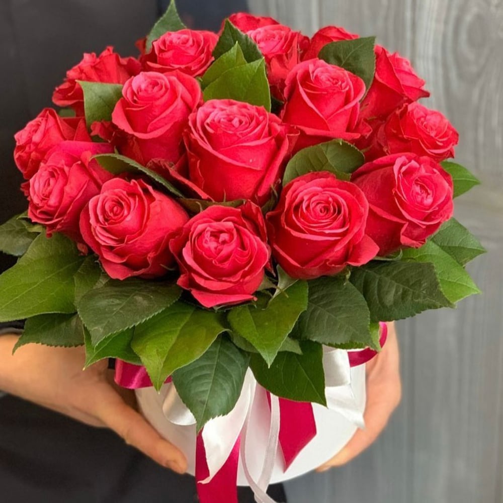 Шляпная коробка с цветами «Коробка красных роз»