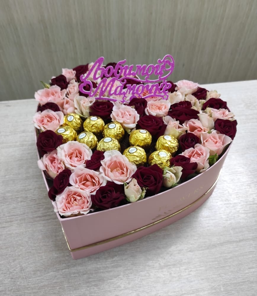 Композиция «Коробка любви с Ферреро роше» из роз