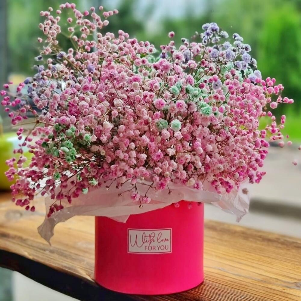 Шляпная коробка с цветами «Коробка с гипсофилой»