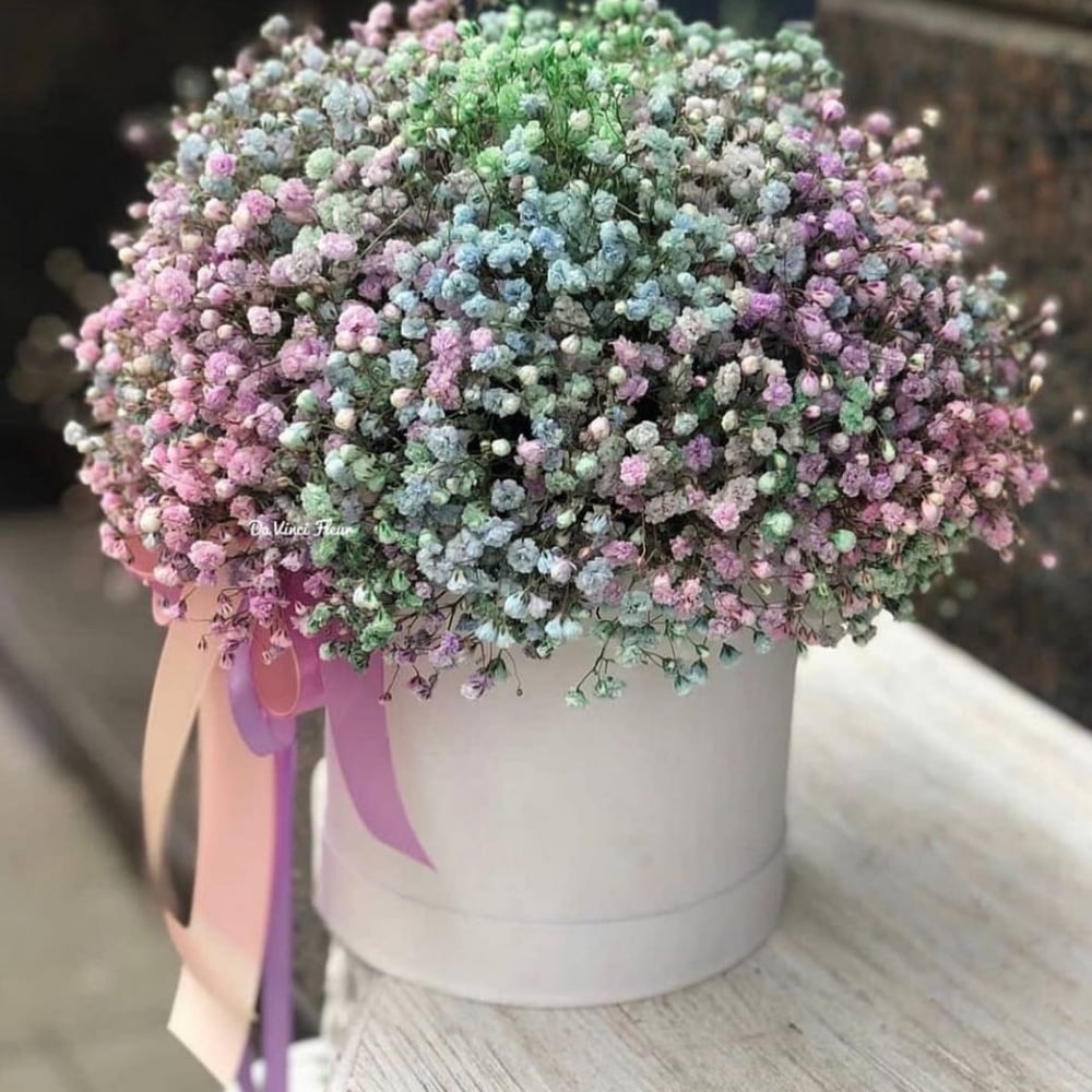 Шляпная коробка с цветами «Коробка с гипсофилой»