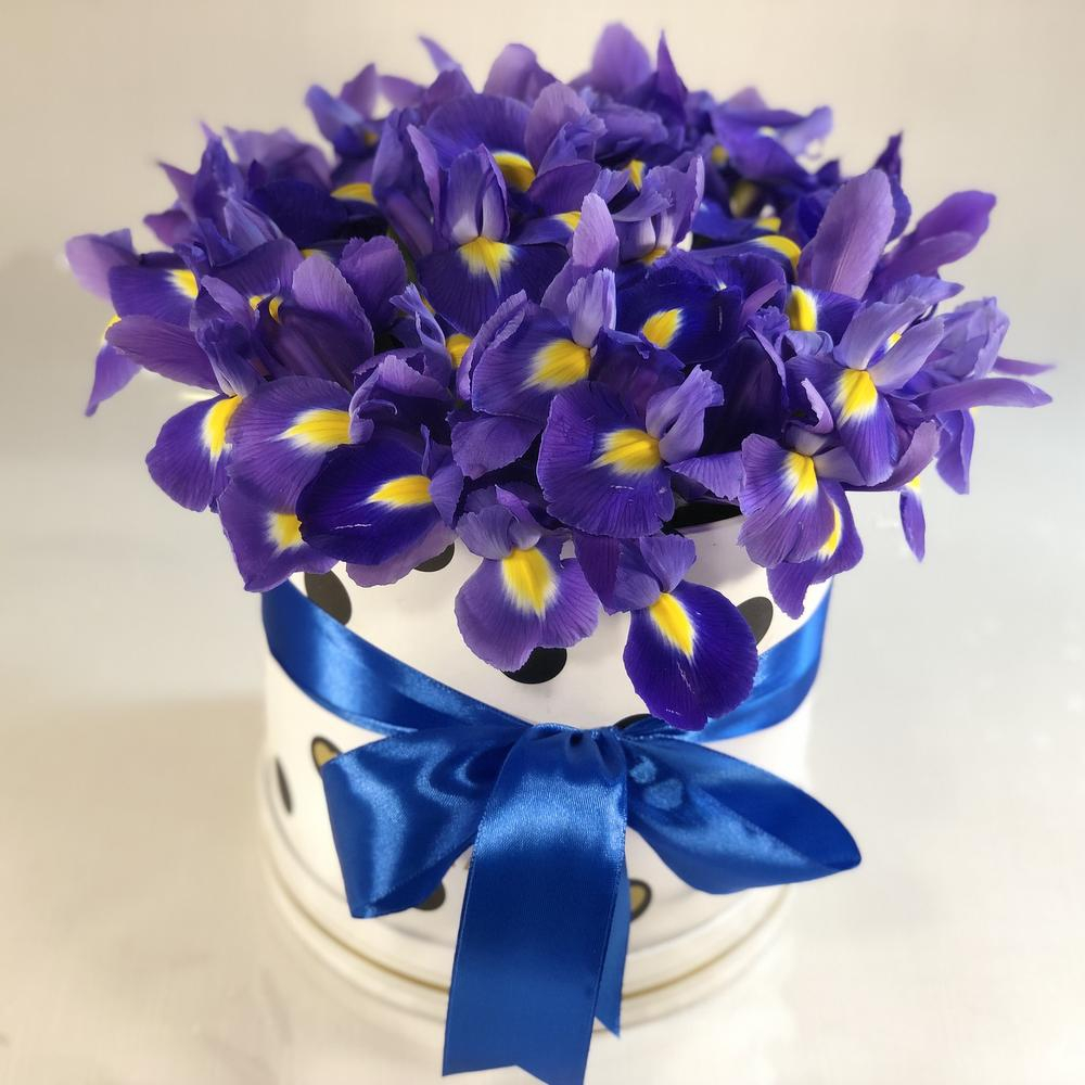 Шляпная коробка с цветами «Коробка с ирисами»