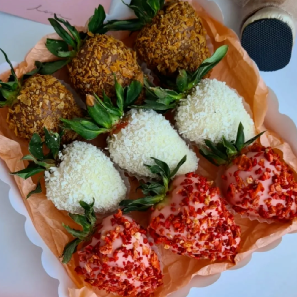 При изготовлении используется три вида наивкуснейшего белого,молочного,розовый шоколада и топпингом из сублимированной малины,кокосовой стружки Количество 9 шт Срок хранения 24 часа при темпер...