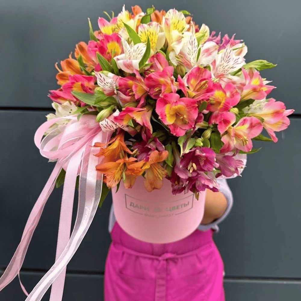 Шляпная коробка с цветами «Коробочка с альстромерией»
