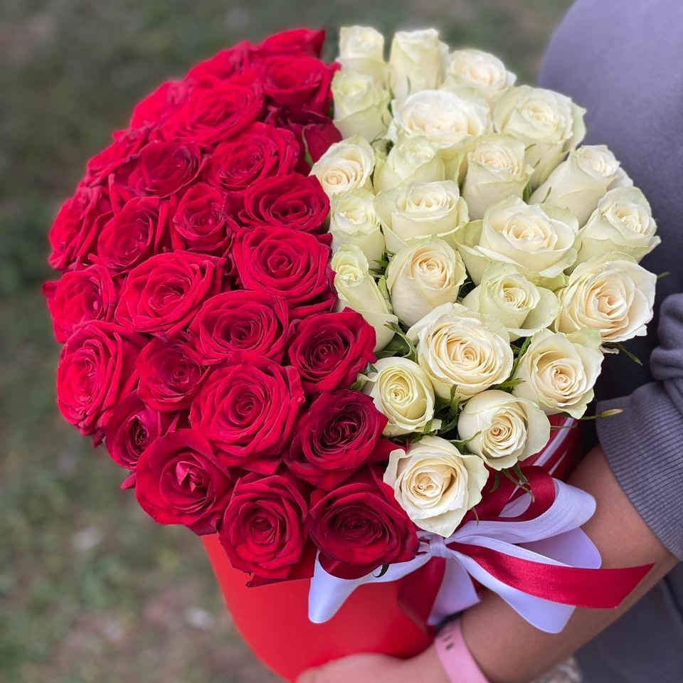 Cоединенные в одном букете белые и красные розы символизируют гармоничную любовь и единство взглядов, единодушие, союз, долгую и прочную дружбу. Причем, если вы выберете розы, белые лепестки которых будет обрамлять красная окантовка, смысл такой букет будет нести аналогичный.