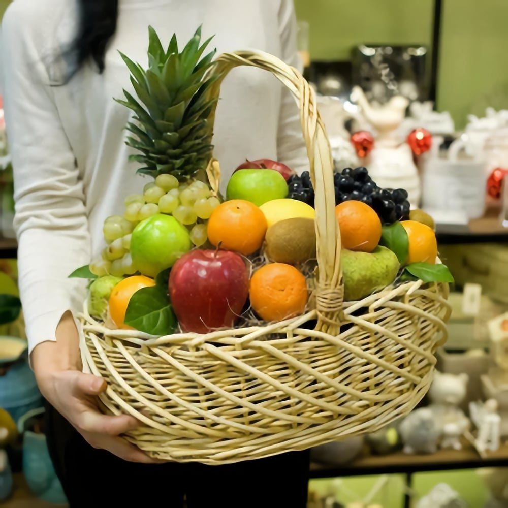 Красиво оформленная плетеная корзина с фруктами к празднику 7 кг, упакованная в целлофан с бантом. Подойдет в подарок как семье или отдельно любимому человеку, так же выздоравливающим получателям...