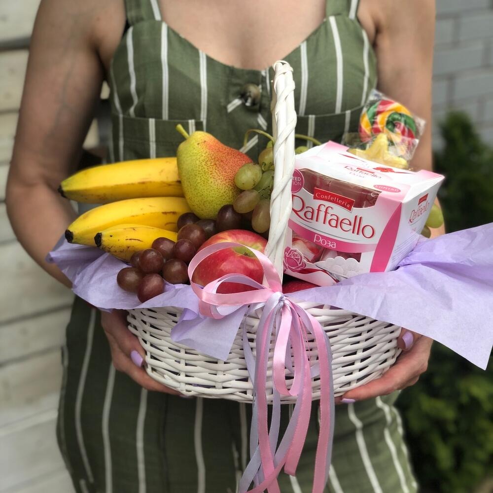 Витаминная корзина с фруктами и конфетами. В корзину входит: бананы, яблоки, персики, Виноград, груши, коробка Рафаело и леденцы 🙂. На подарок любимой, маме, бабушке, девушке, коллеге. Состав: Л…