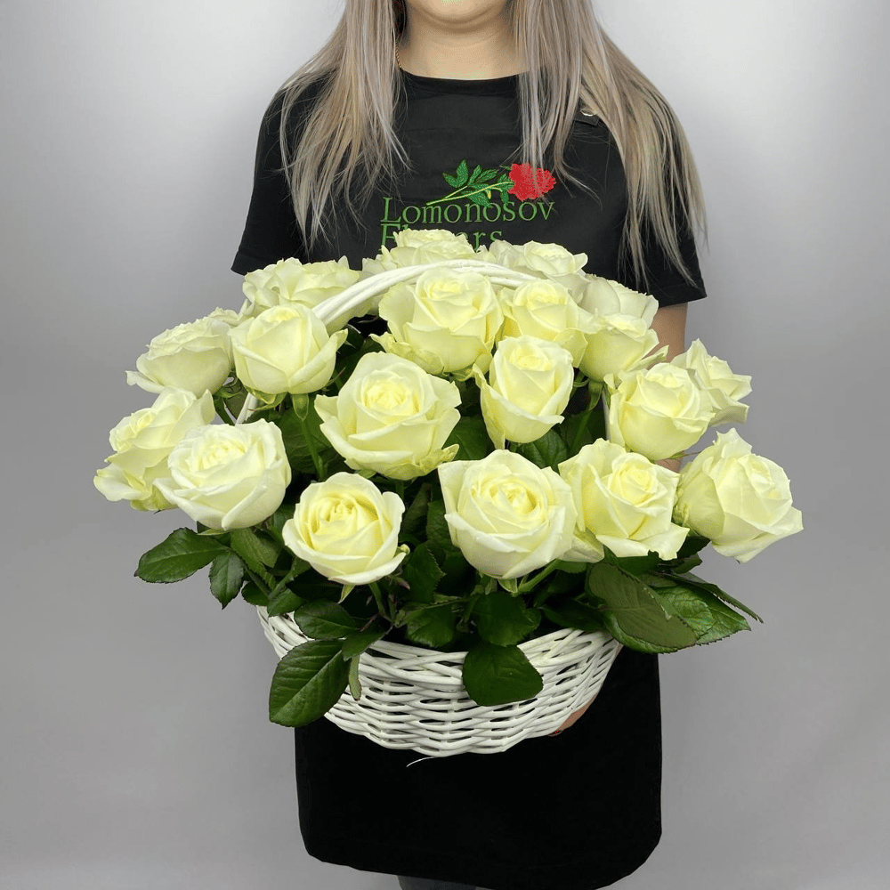 Корзина из 25 белых роз
