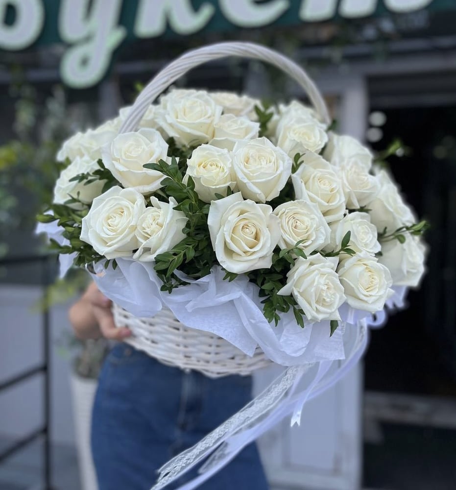 Когда не знаешь как выразить свои чувства. Помогут в этом цветы. Флористы собрали эту корзину из самых свежайших роз. Теперь она готова удивить красотой своего получателя.