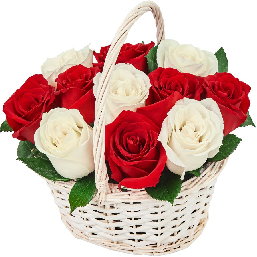 Корзина из белых и красных роз небольшая