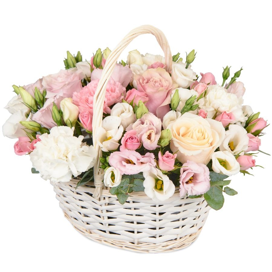 Корзина из роз и гвоздики небольшая