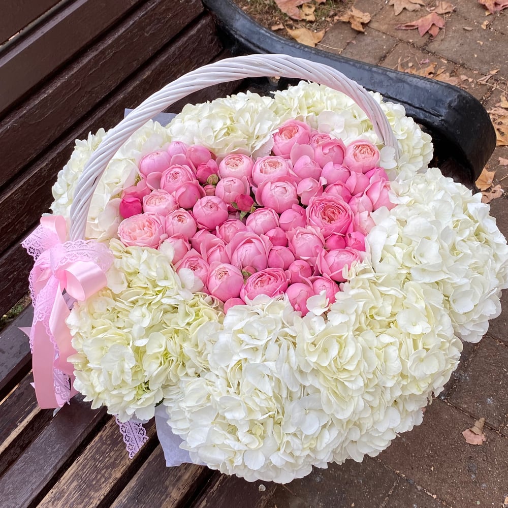 Корзина Розовое сердце из пион роз