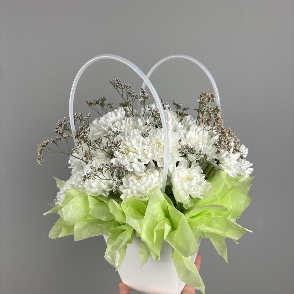 Коробка с цветами «Корзина с белой кустовой хризантемой»