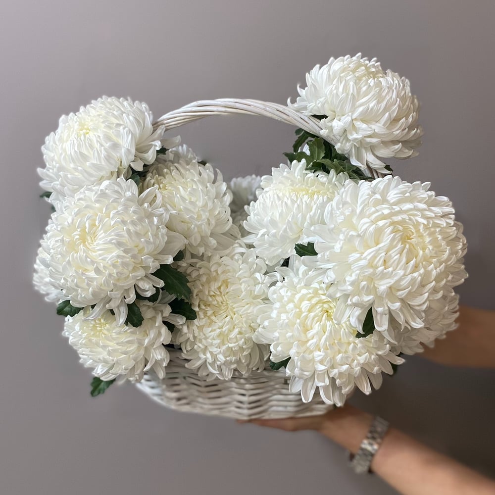 Корзина с белыми хризантемами 17 шт для мамы.