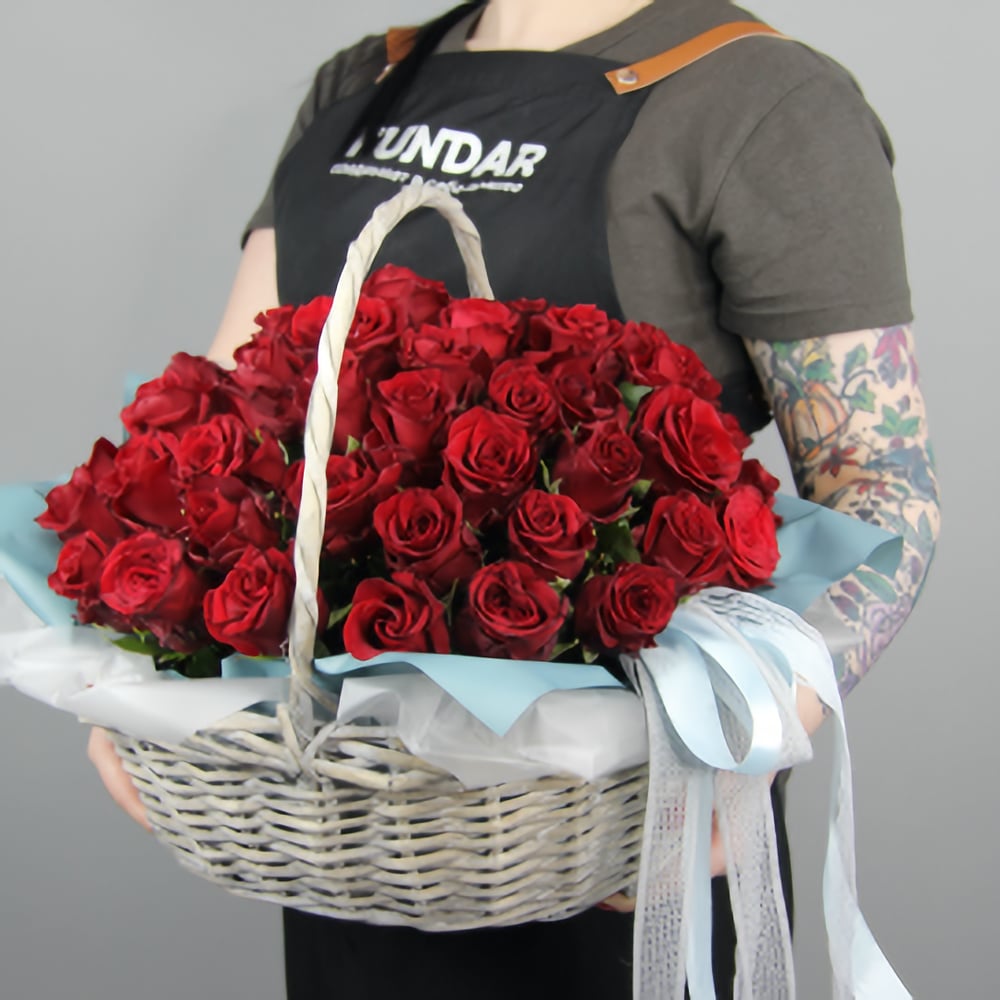 Корзина с красными розами