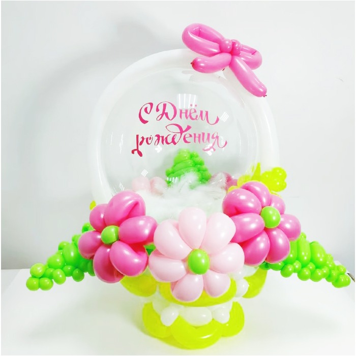 Корзина с цветами из воздушных шаров