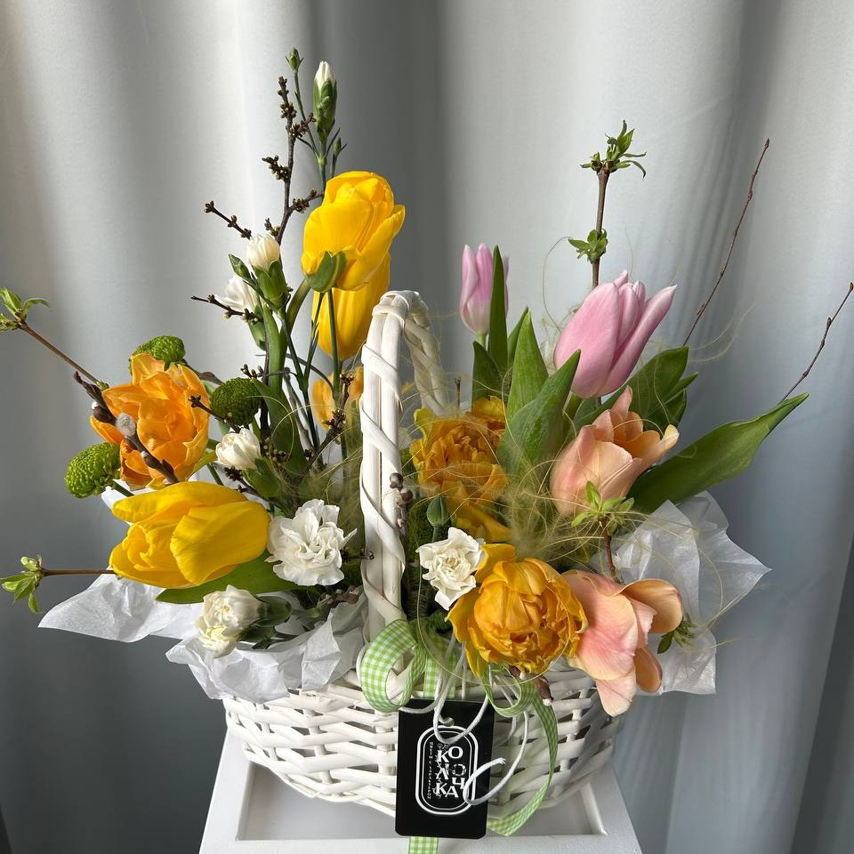 Корзина с тюльпанами