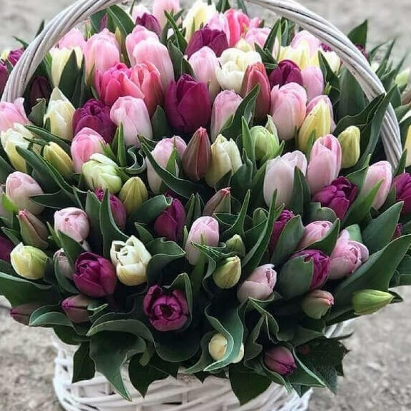 Корзина с тюльпанами микс 2
