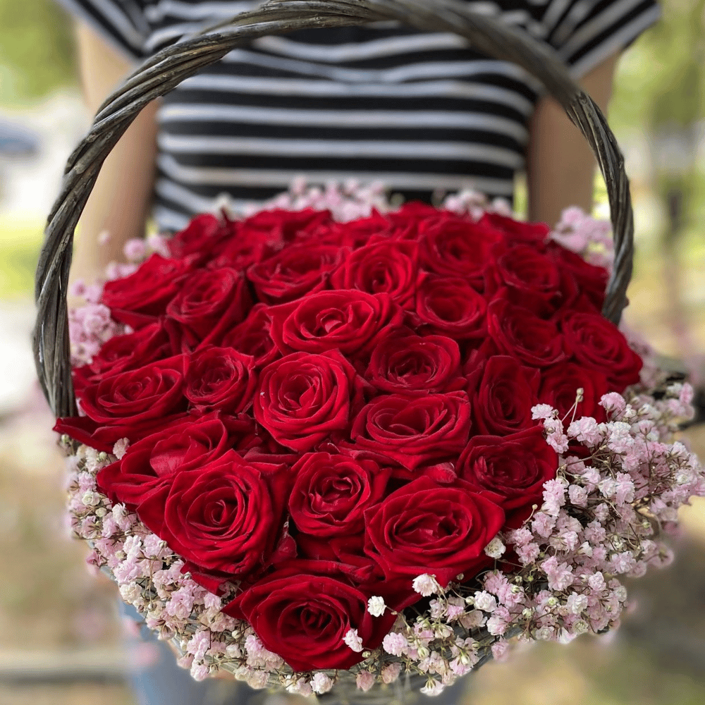 Корзина Сердце из гипсофил