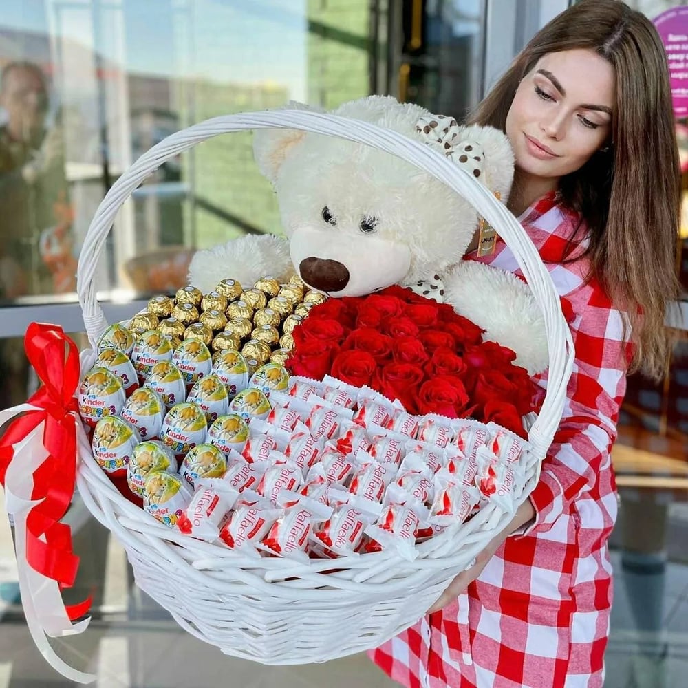 Корзина розы сладости мишка игрушка