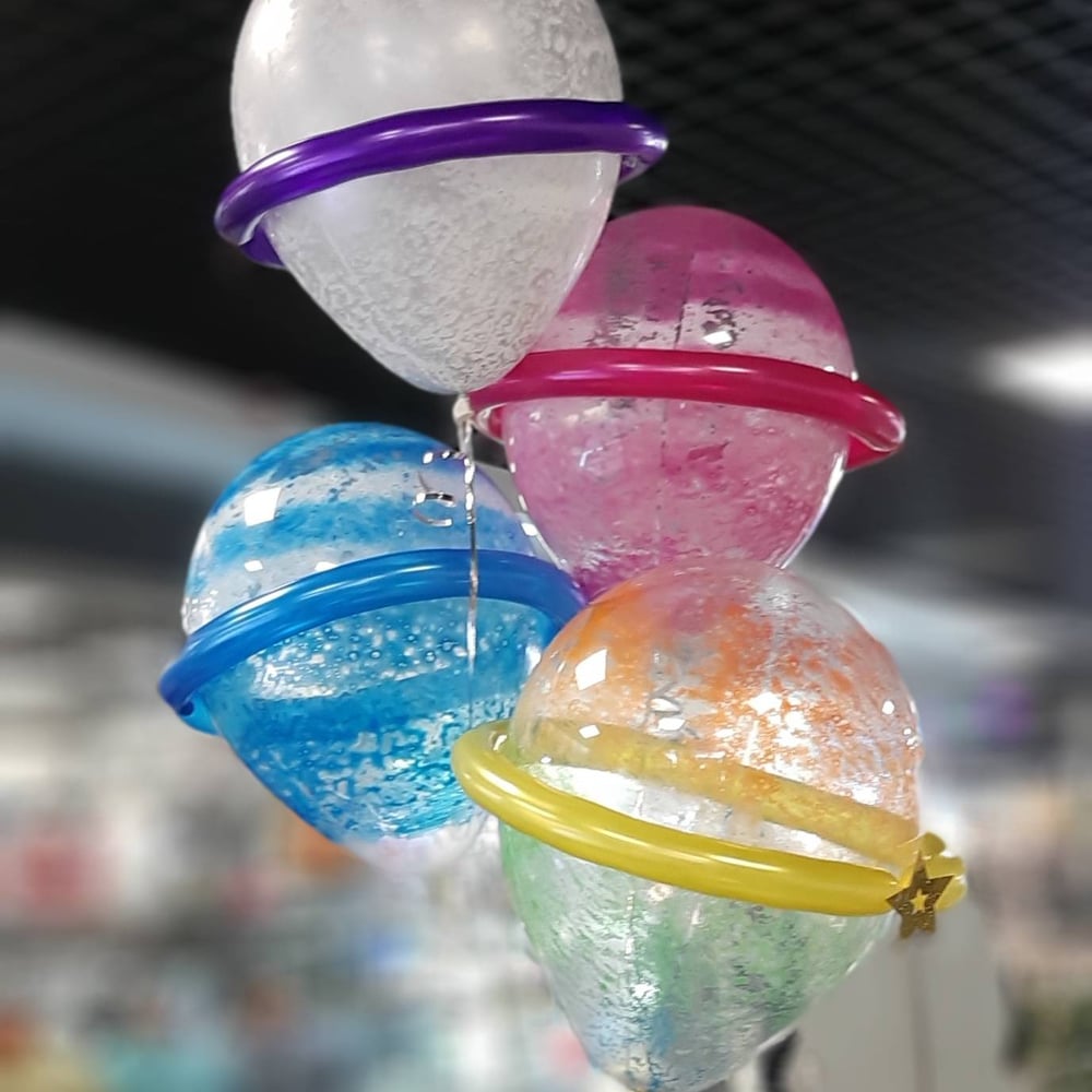 Связка из четырех гелевых шаров с декором в виде звезды.