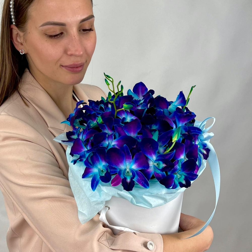 Небольшая коробочка эксклюзивных синих цветков дендробиум , напоминающих КОСМОС! Космическая коробочка !! Такие цветы приятно удивят получателя, ярко, но в тоже время очень стильно и со вкусом ...