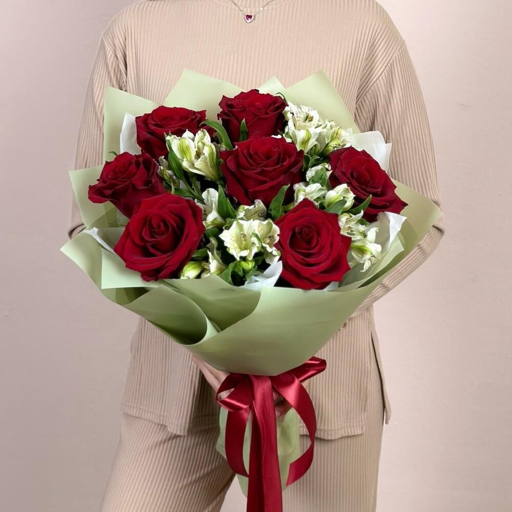 Мы рады предложить вам очаровательный букет красных роз с белой альстромерией, который станет замечательным подарком для любого торжества! Прекрасный подарок на День Матери! Этот изысканный букет идеально подходит как для букета на юбилей, так и для букета на выписку. Красные розы осенью добавляют теплоты, а белая альстромерия придает нежность, делая это сочетание идеальным букетом для любимой жены или букетом для дочери. Вы можете легко купить цветы с доставкой на дом, чтобы порадовать близких в любое время. Эти цветы также станут прекрасным выбором букета для директора или букетом роз для учителя. Не упустите возможность заказать букеты, которые сделают любой день особенным!