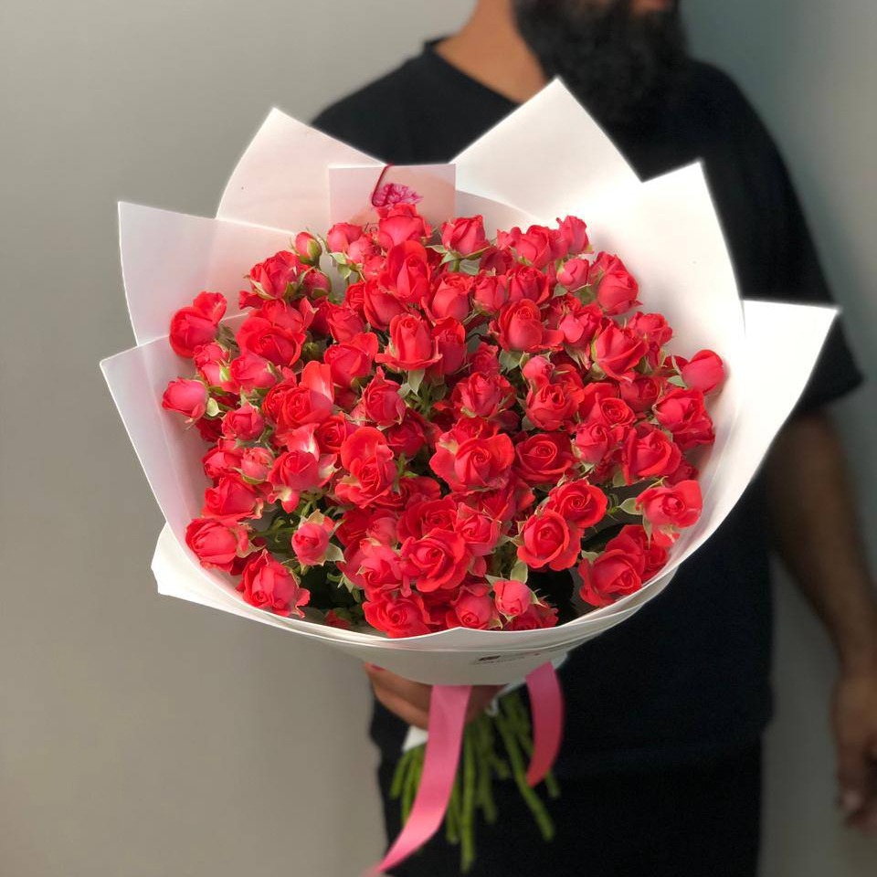 Яркий букет красных кустовых роз в светлой упаковке Букет на день рождения ,букет на юбилей ,букет на выпускной ,букет маме ,букет подруге ,букет для дочки ,букет сестре ,букет бабушке ,буке…