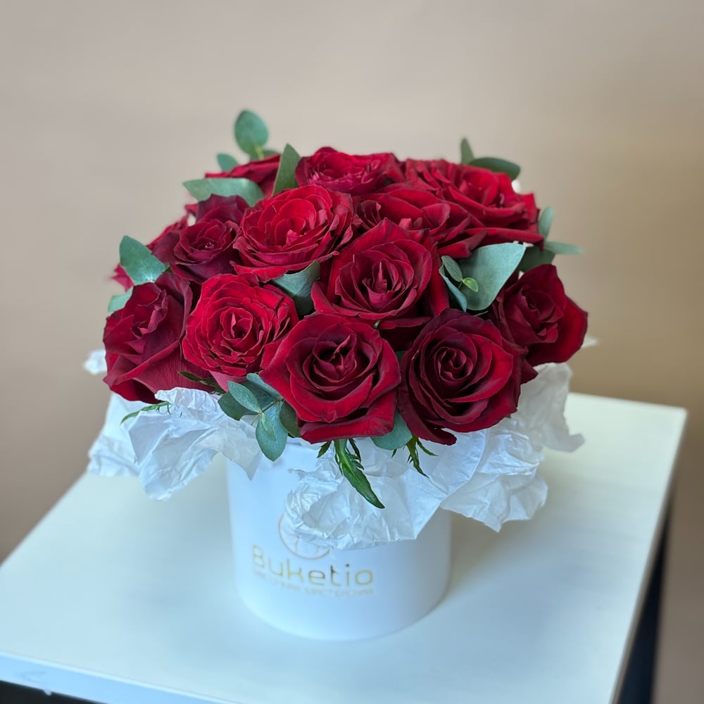 Шляпная коробка с цветами «Красные розы в коробке 15 шт»