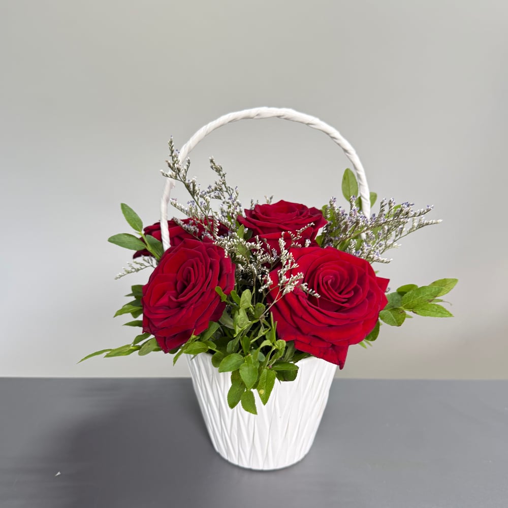 Красные розы в корзинке