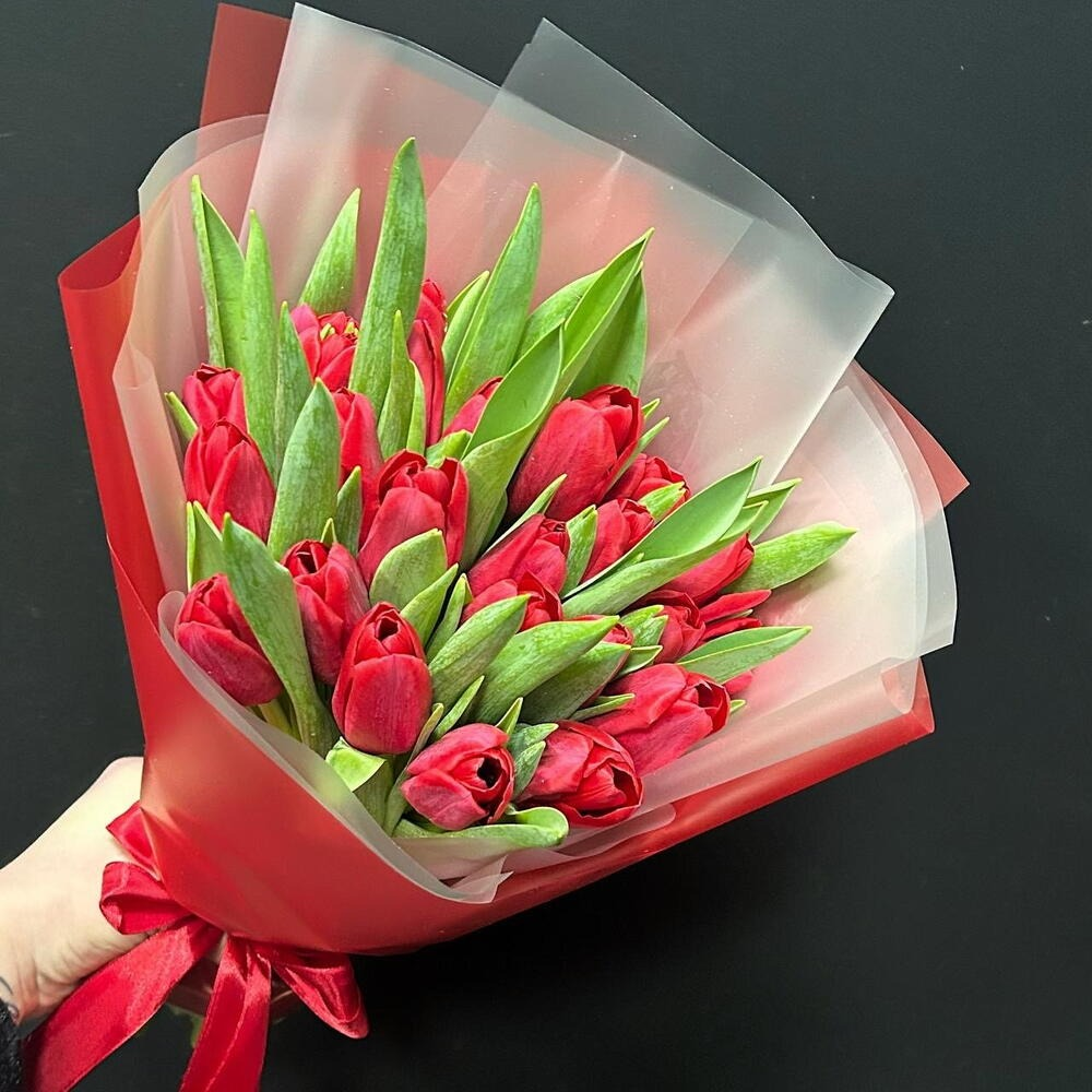Букет «Красные тюльпаны 25шт»