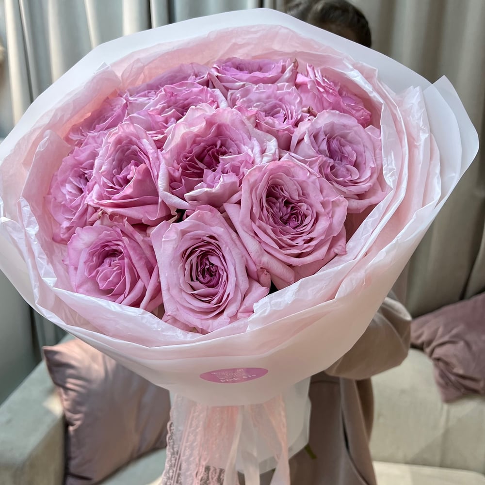Этот букет состоит из 13 роз пионовидной самой ароматной розы на свете, которые символизируют нежность, красоту и любовь. Этот букет наполнит ароматом любви весь ее дом. Каждая роза упакована с заботой в стильную авторскую упаковку, что делает этот букет еще более привлекательным и особенным. Подарите этот букет, чтобы выразить свои чувства и дарить радость вашим близким.